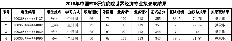 五、对外经济贸易大学中国世界贸易组织研究院世界经济专业研究生拟录取情况(2018年名单):