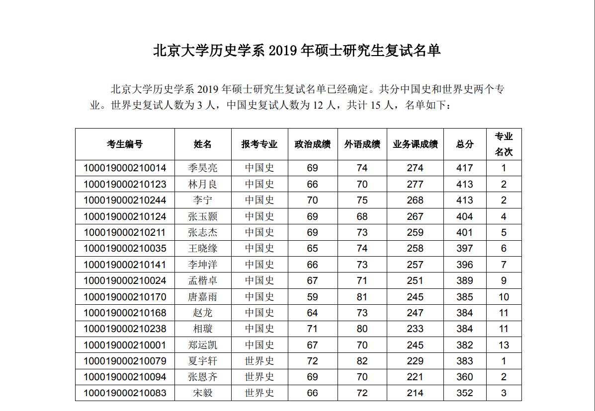 2. 共分 2 个专家复试小组,每组专家为 5 人;每位考生的面试时间一般不少于20 分钟。复试组填写考生复试记录。本规则的解释权在北京大学历史学系2019年研究生招生工作领导小组。