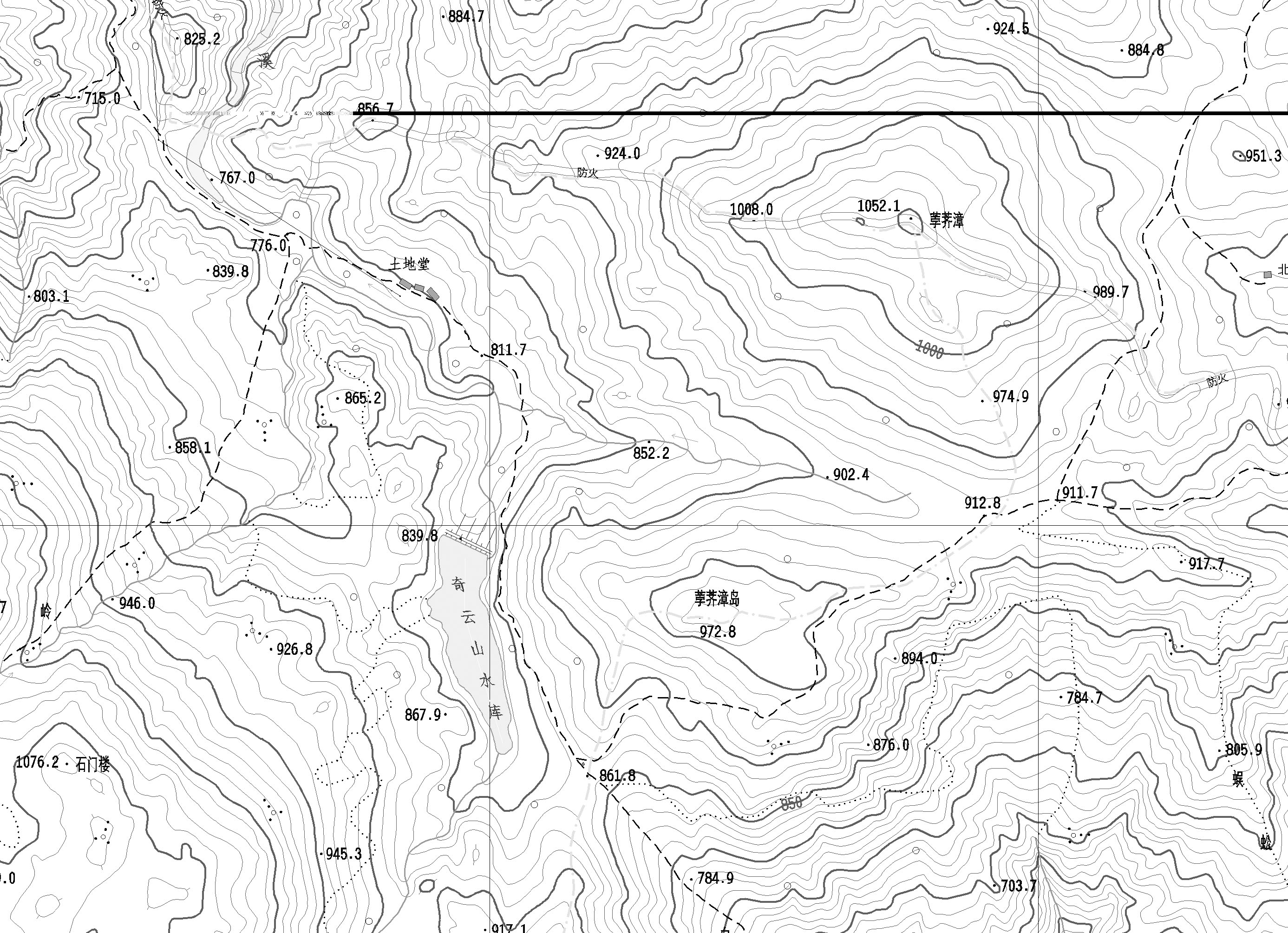3)奇云山水库下游溪流所处海拔高度范围为多少米(图上可见范围)?