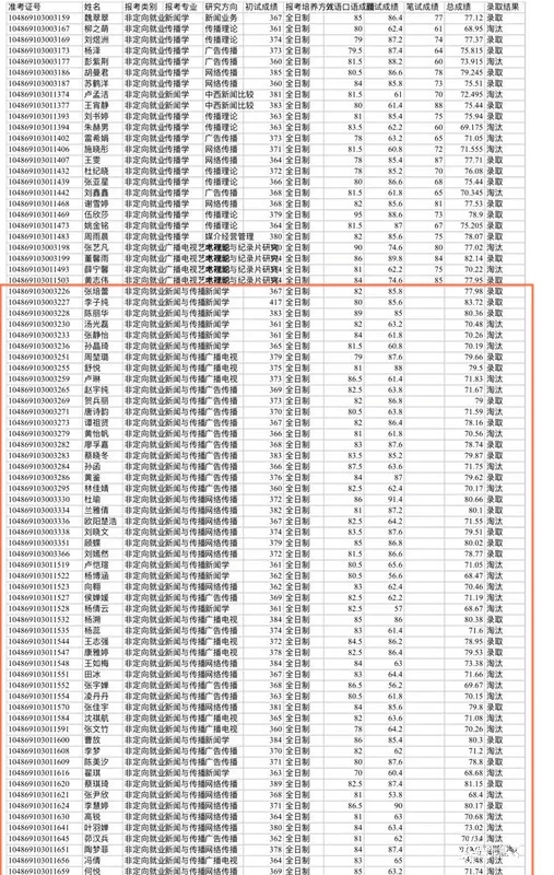 2019新闻与传播复试结果(部分)