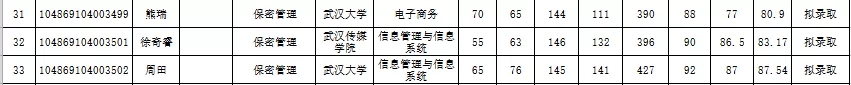 二、武汉大学保密管理复试分数线
