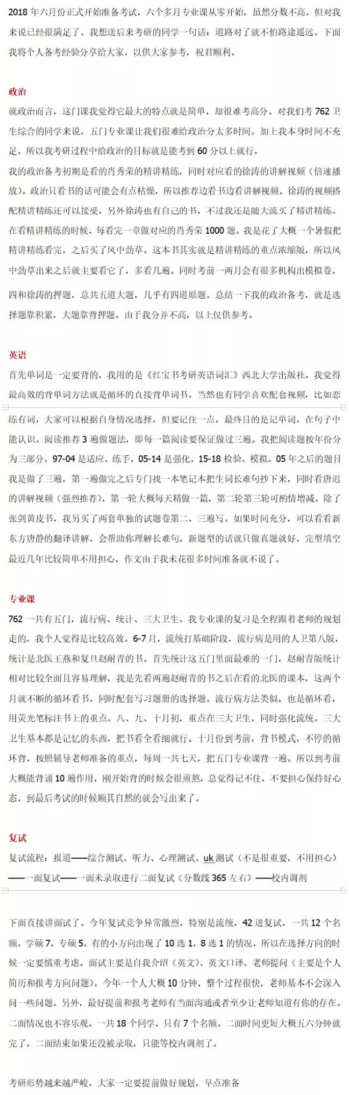 2020北京大学公共卫生学院(762卫生综合一)考研经验指导