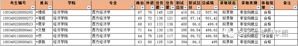 2019年中央财经大学经济学院录取情况