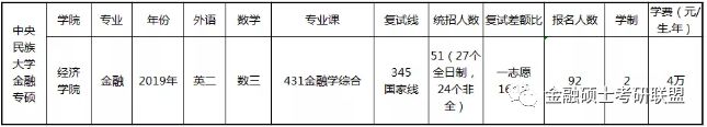 中央民族大学金融硕士19年录取情况如下: