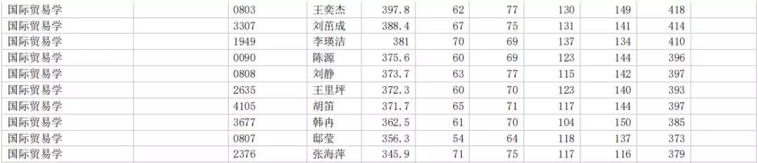 国际贸易学复试名单:进入复试12人其中最高分446分,最低分373分