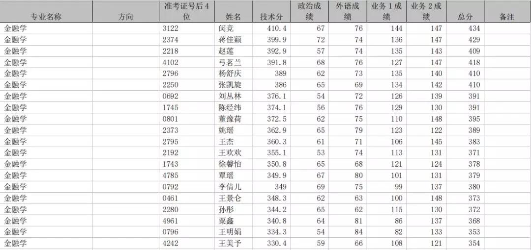 金融学复试名单:进入复试20人其中最高分434分、最低分353分