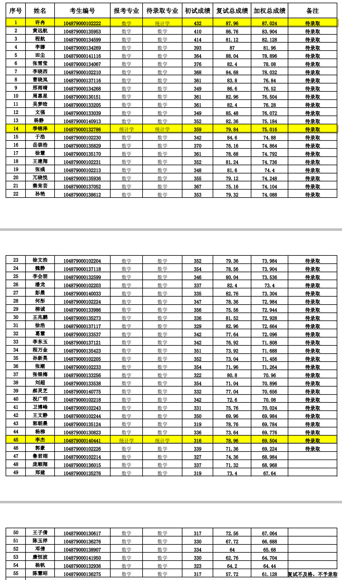 统计学3人(参考2019录取人数)