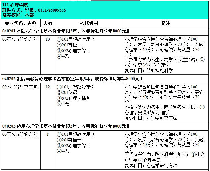 不招同等学力考生,跨学科考生加试:①心理学史②认知心理学