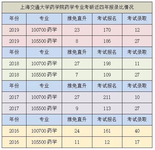 六、上海交通大学药学院药学专业考研近四年报录比情况: