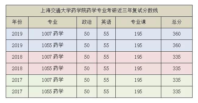 五、上海交通大学药学院药学专业考研近三年复试分数线: