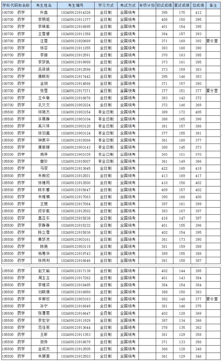 三、20考研药学院药学专业招生人数,研究方向及考试科目: