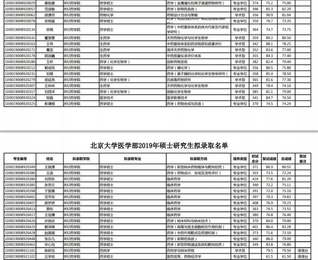 五、2019北京大学医学部药学院研究生入学考试拟录取名单: