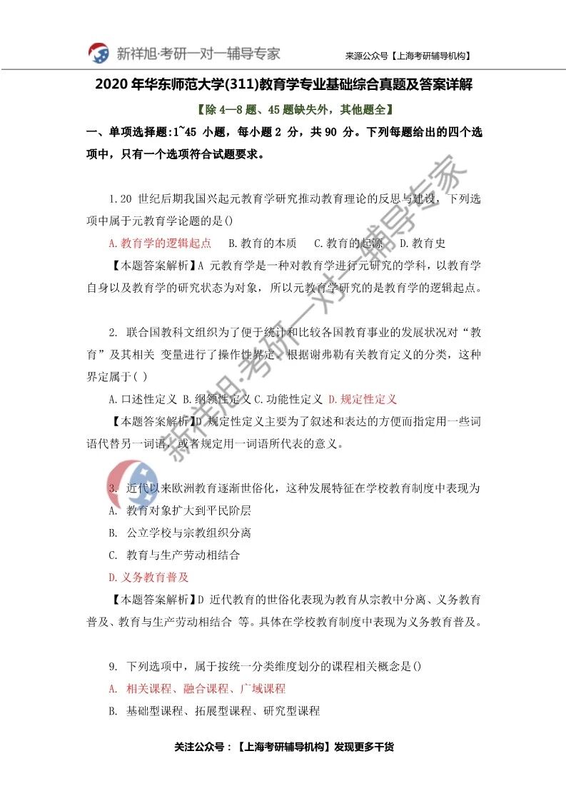 【2020年华东师范大学(311)教育学专业基础综合真题及答案详解】