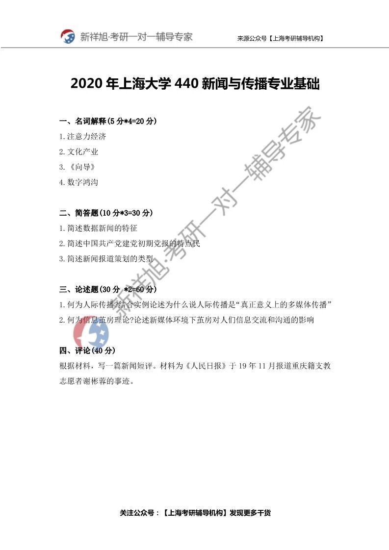 【2020年上海大学440新闻与传播专业基础考研真题】