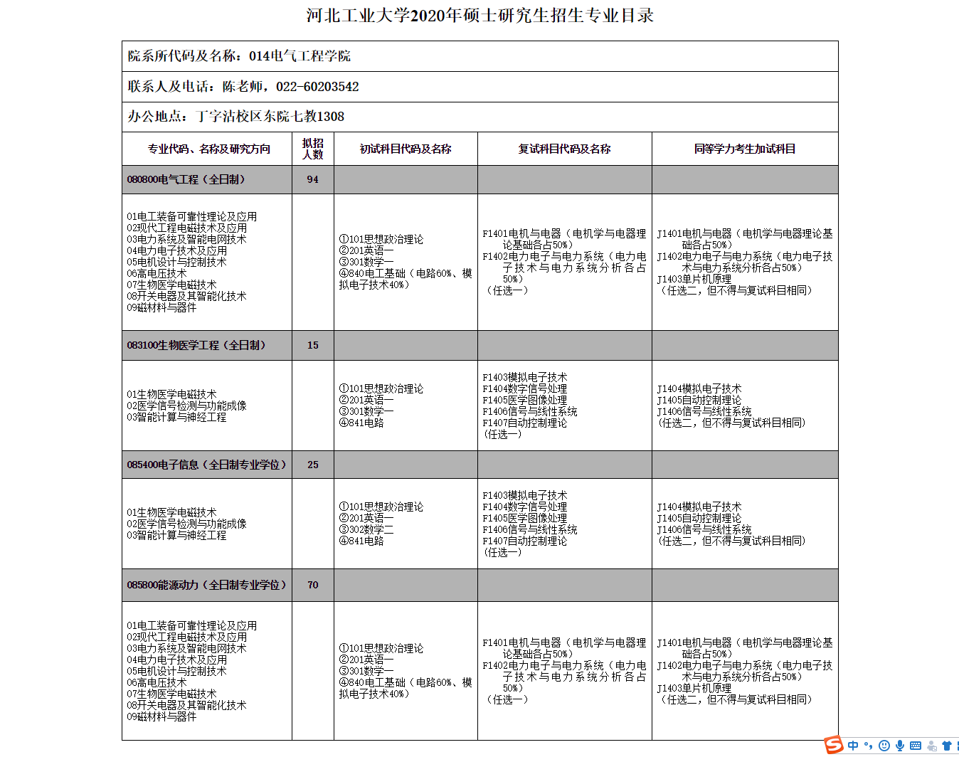 河工大考研辅导班:2020年河北工业大学电气工程学院专业目录