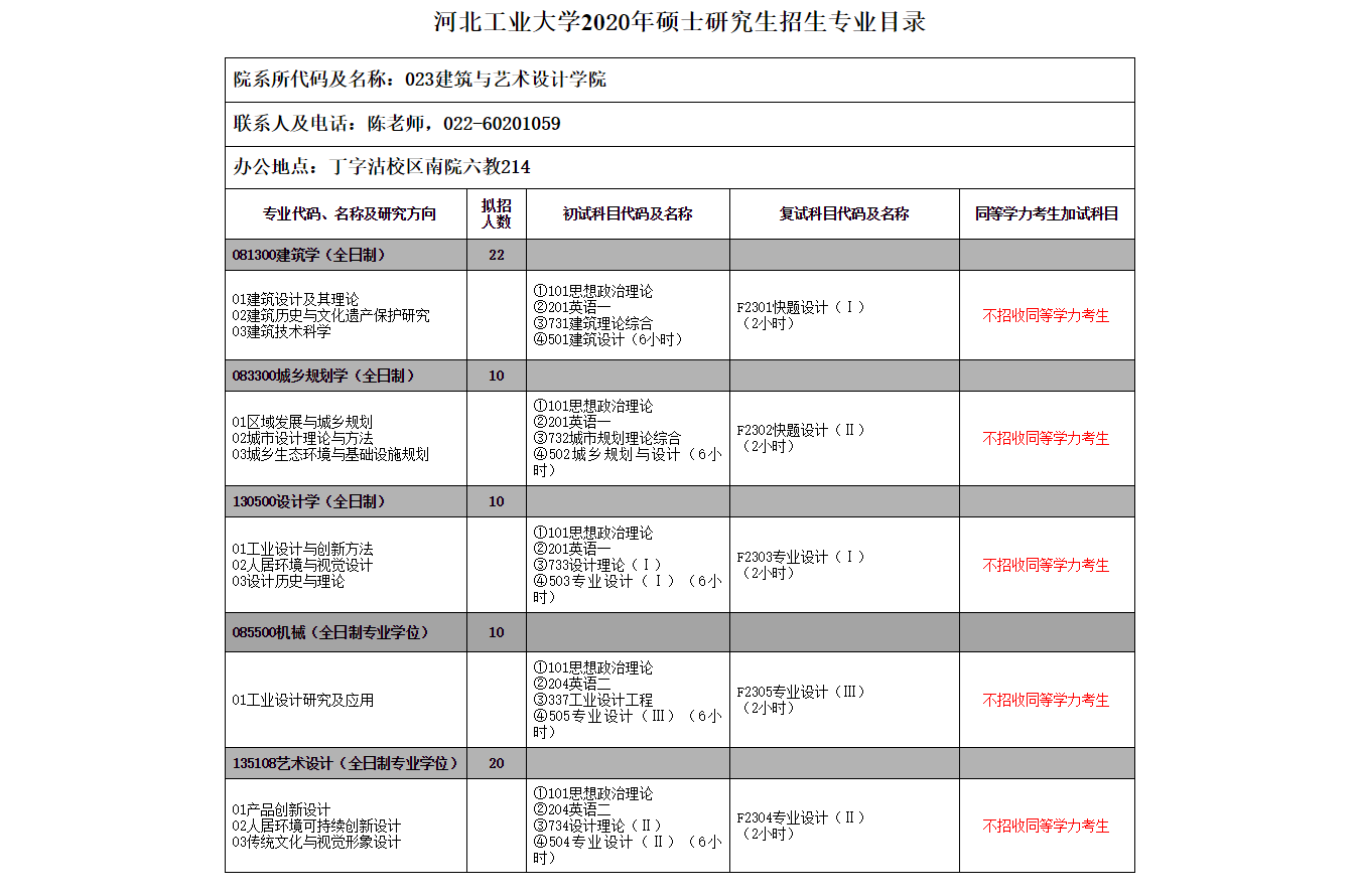 河工大考研辅导班:2020年河北工业大学建筑与艺术设计学院专业目录