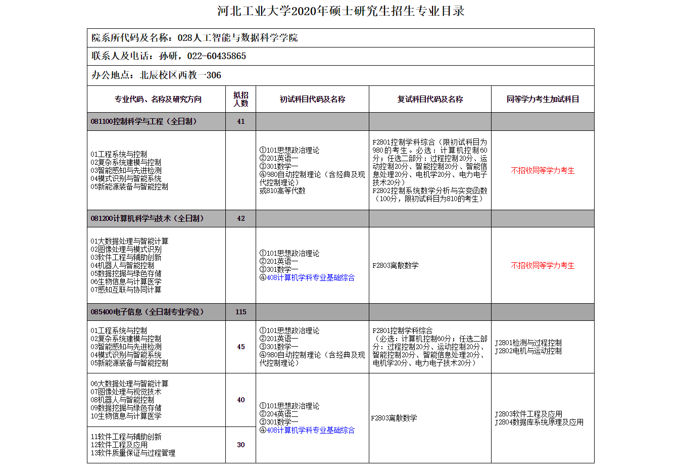 河工大考研辅导班:2020年河北工业大学人工智能与数据科学学院专业目录