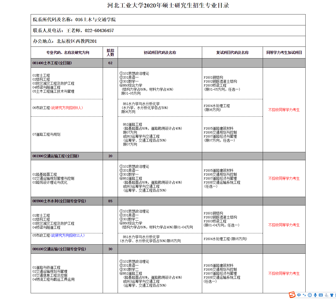 河工大考研辅导班:2020年河北工业大学土木与交通学院专业目录