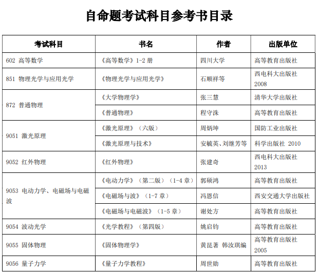 西安电子科技大学考研辅导班:2020西安电子科技大学物理与光电工程学院考研参考书