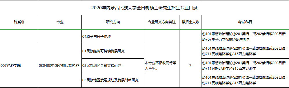 内蒙古大学考研辅导班:2020年内蒙古大学经济学院考研专业目录