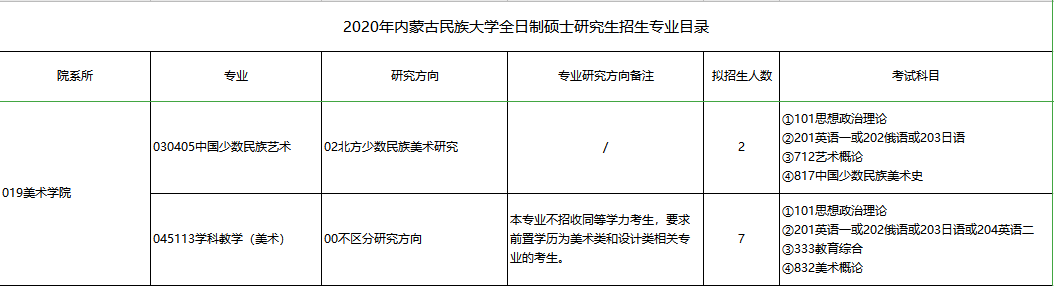 内蒙古大学考研辅导班:2020年内蒙古大学美术学院考研专业目录