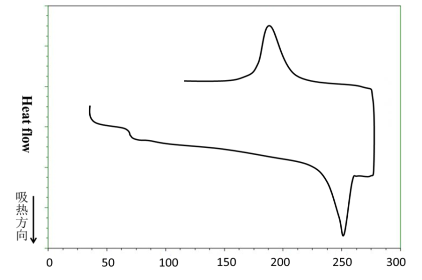 2.下图为某结晶性高分子的升温和降温DSC曲线,请据此判断该聚合物的玻璃化转变温度(Tg)、熔融温度(Tm)和熔体降温过程中的结晶温度(Tc);简要说明确定上述三个数值的依据;
