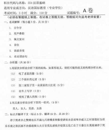 烟台大学考研辅导班:2019年烟台大学汉语国际教育考研354真题