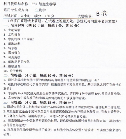 河师大考研辅导班:2018年河南师范大学考研624细胞生物学真题
