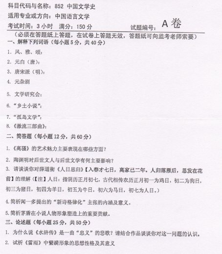 河师大考研辅导班:2018年河南师范大学考研852中国文学史真题