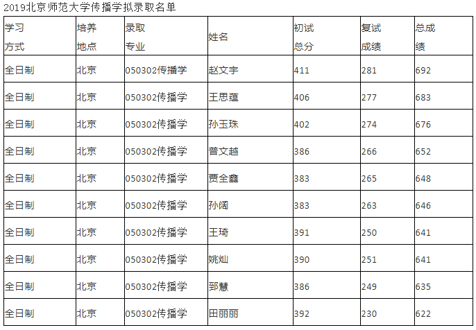 七、2019北师大传播学研究生拟录取名单