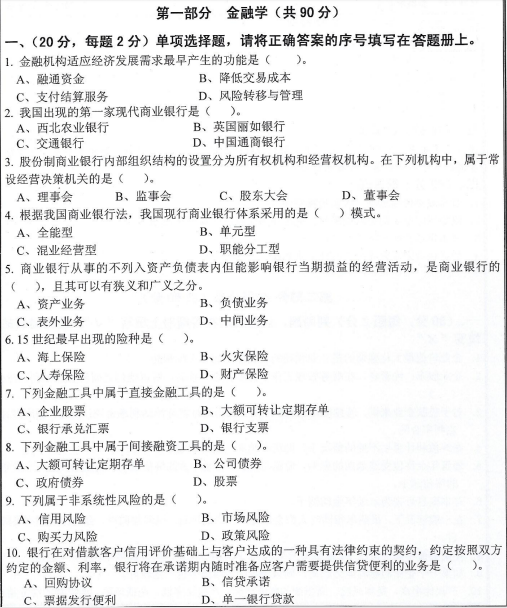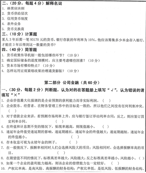 暨大考研辅导班:2018年暨南大学金融学考研真题