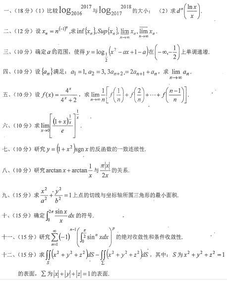 安徽师范大学考研辅导班:2018年安徽师范大学考研601数学分析真题