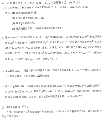 安徽师范大学考研辅导班:2018年安徽师范大学考研712分析化学真题