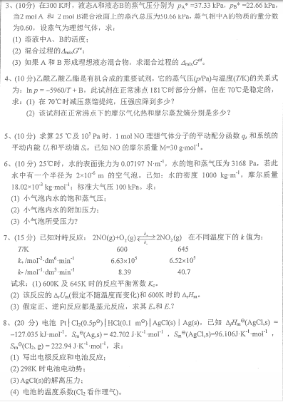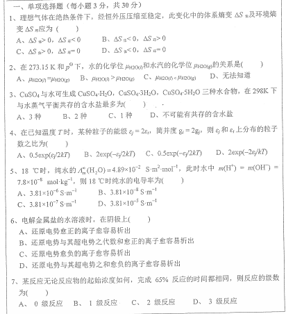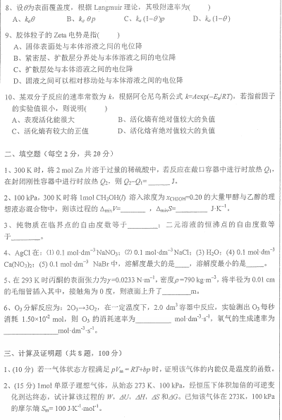 安徽师范大学考研辅导班:2018年安徽师范大学考研911物理化学真题